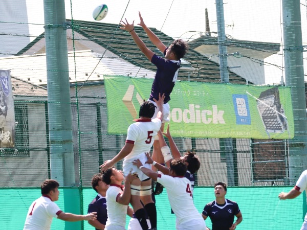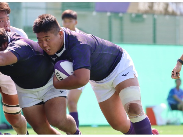 しかし、早稲田大学のペナルティから狙ったタッチキックがノータッチになり、早稲田大学ボールになるとそのままアタックを継続され、前半24分に早稲田大学にトライを許します。その後は一進一退の攻防が続きスコアが動きませんでしたが、再び早稲田大学のペナルティから狙ったタッチキックがノータッチになり、早稲田大学ボールになると、最後はオフロードパスをうまく繋がれ、前半41分にトライを許します。しかし、前半終了間際には敵陣ゴール前でラインアウトのチャンスから、ラインアウトモールを押し込み、HO西野帆平がトライをあげ、前半を17-14で折り返します。