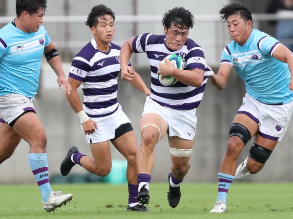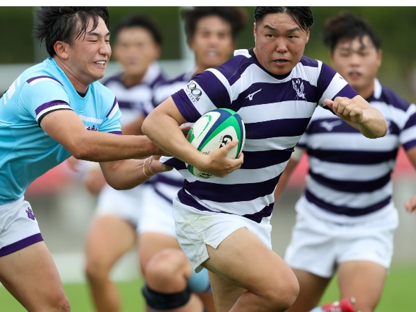 後半19分には、自陣22m付近のスクラムからのアタックでボールキャリアが前に出続け、オフロードパスを繋ぎながらゴール前まで迫ると、最後はSO伊藤耕太郎がトライをあげ、逆転に成功します。直後の後半22分にも7フェイズ、アタックを重ねCTB廣瀬雄也がトライをあげ、筑波大学を引き離します。さらに、後半41分に筑波大学のペナルティからクイックスタートを仕掛け、最後はFL福田大晟がトライをあげ、40-21で試合終了を迎えました。