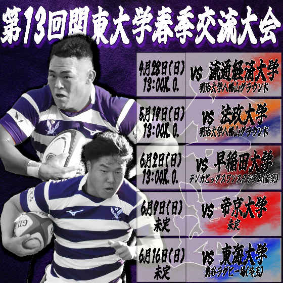 関東ラグビーフットボール協会より、第13回関東大学春季交流大会の試合日程が発表されました。