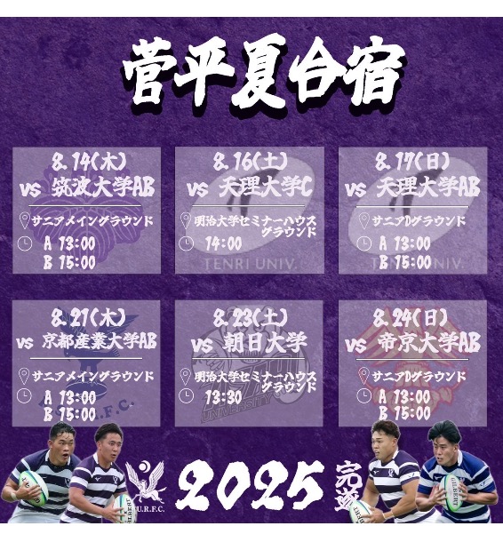 今年度8月12日から25日にかけて菅平にて行われる夏季強化合宿の試合日程が決定しました。